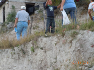 Today we were able to meet the family of two of the boys that are here. You might wonder why they are here if they have a family. There are nine children in this family and no father. They live in a one room shack, no bathroom facilities, no kitchen (just an open fire to cook over) and no food. The mother has given two of her children over for the Manuelito project to care for. Her children hang out on the streets and know to visit homes at meal time, yet with so many in the same situation I can’t imagine that they find much. When we arrived at her home we had to walk up a very steep hill and follow a trail with a very steep drop off to the left of the path.